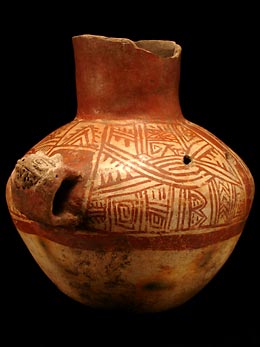 Puntas bifaciales y puntas de flecha de obsidina, ocarina de tres cuerpos. |