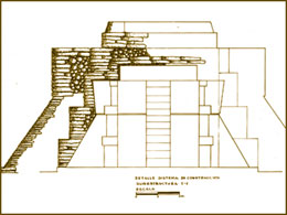 ![]() Las dos fases de construcción de la pirámide-templo C-1 de Kawinal. |